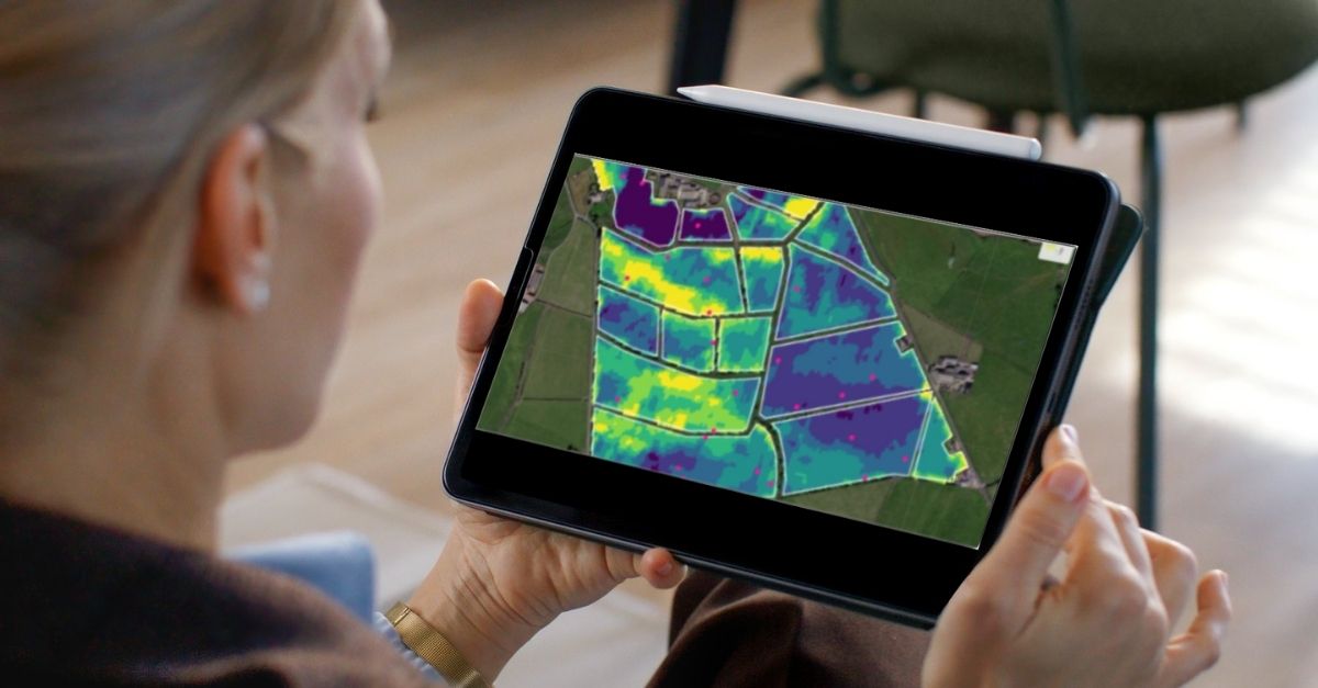 Farm maps with colour-coded data displays.